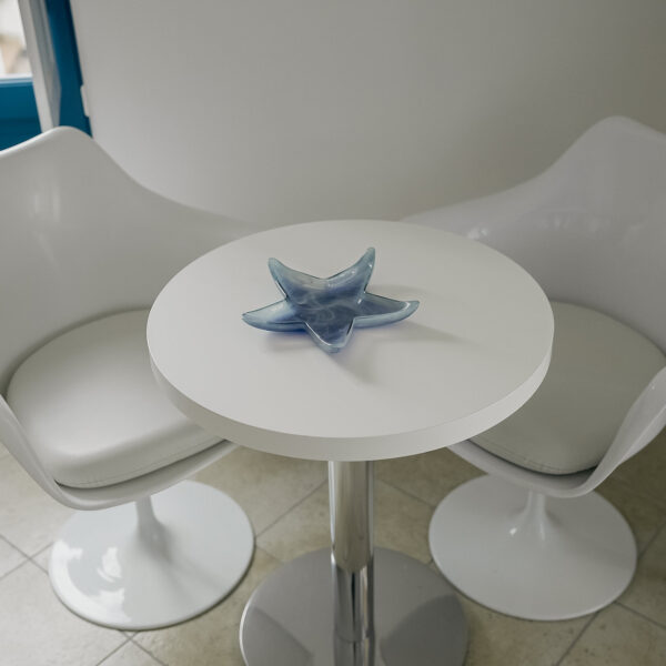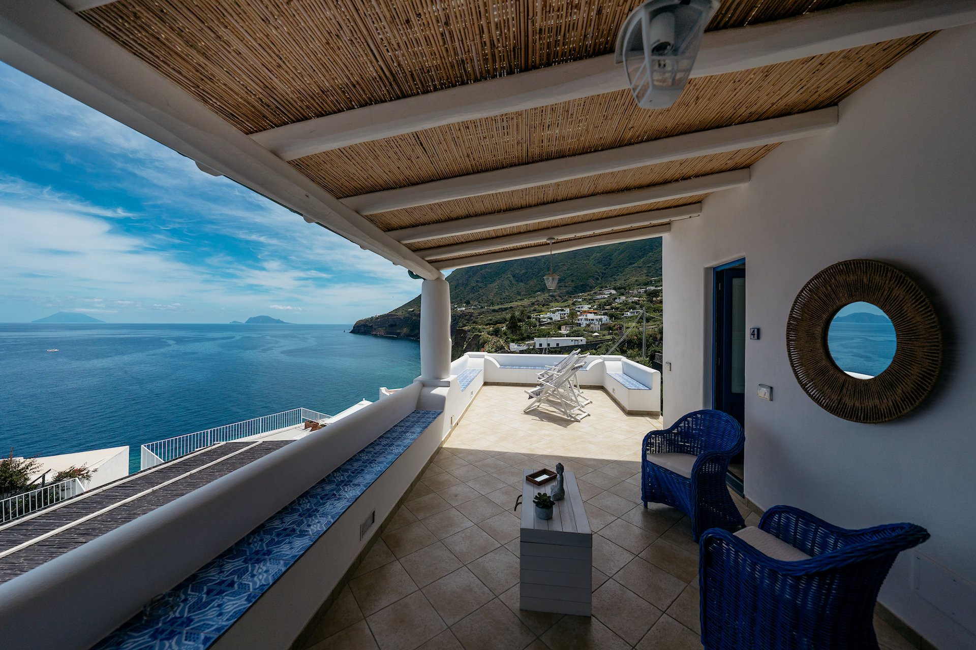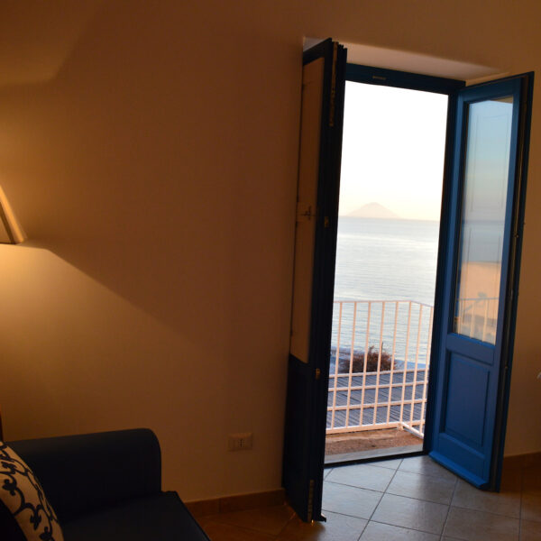 The entrance welcomes you with a living area where you can spend moments of relaxation for a seaside spiritual retreat.